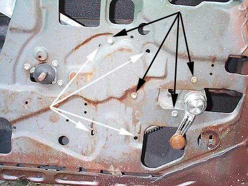 for the power window regulator. These will have to be drilled. Once again,