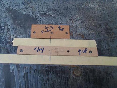 center line with the one from the lower tape, 8.5" and mark the holes.