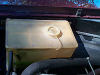 The 1970 washer fluid bottle on left is mounted directly