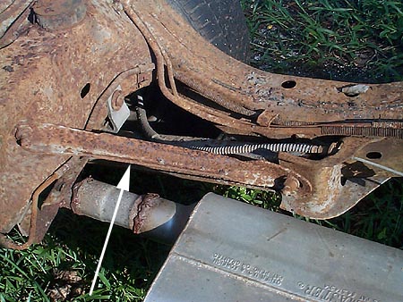 The arrow indicates the rear frame reinforcement bracket.