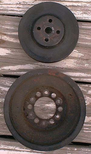 These pulleys increase the speed of the water pump (and clutch fan) significantly.