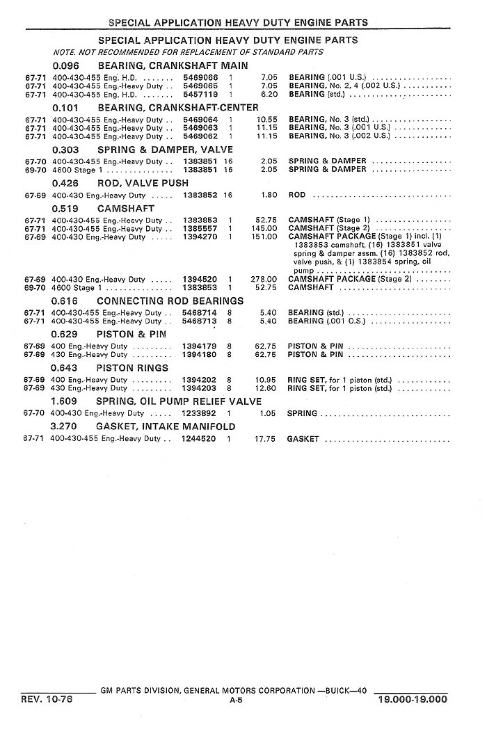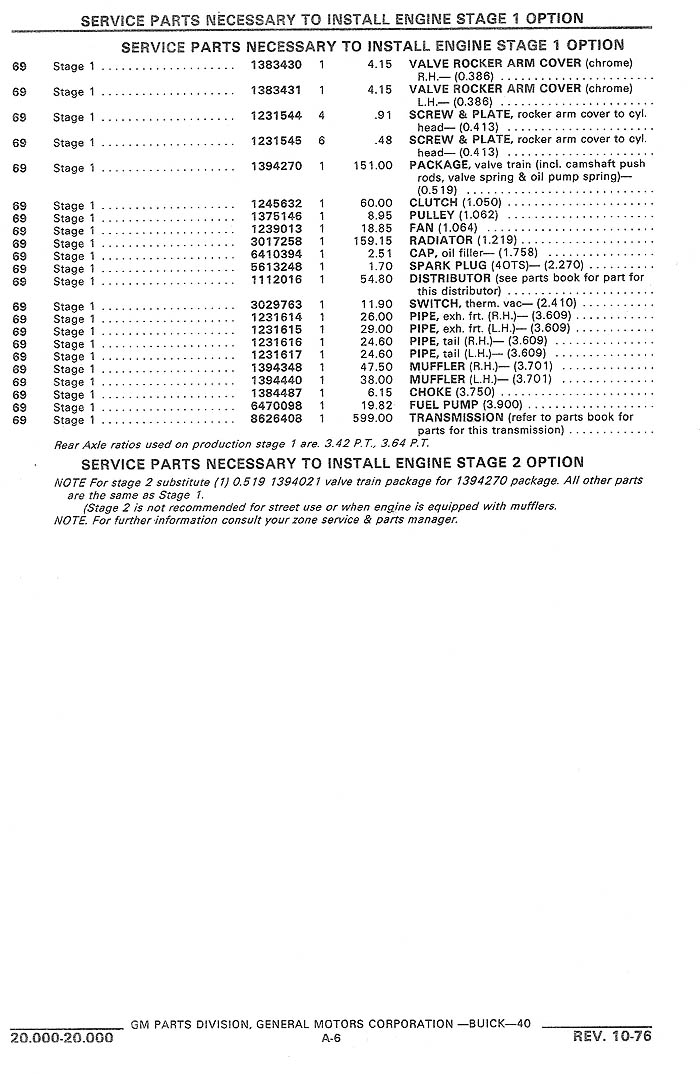 Factory 1969 Stage1 Part Number List