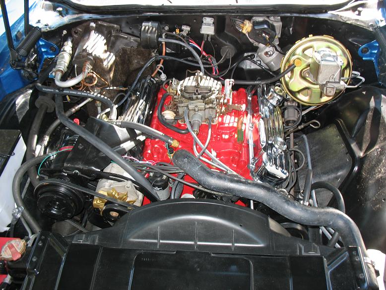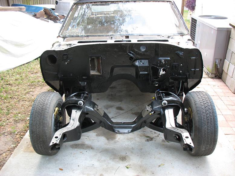 Fresh engine bay waiting for rebuilt engine and transmission.