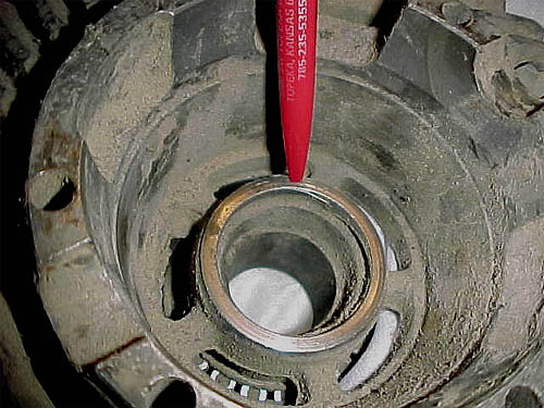 6. In the housing youll see the tapered sides where the cones reside; where the axles slide into the carrier. This is the area that needs to be machined. Have a machine shop take .150 (thats 150 THOUSANDS) off this area with a lathe, on both halves of the housing. CLEAN, CLEAN, CLEAN everything.
