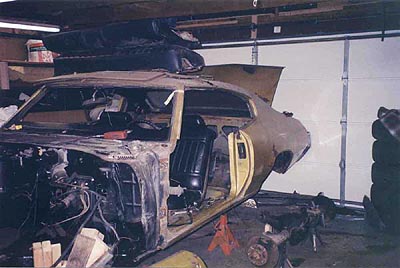 Attached are some pictures of my GS project. I first saw this car sitting in a driveway about 4 blocks from my house back in 1995. After driving past it every day I finally stopped to check it out in march of 1998. I had a brief conversation with the owner and found out he was selling it. He was asking $3,500. I checked the numbers on the car and found it had the original engine and transmission and had the V engine code in the VIN indicating it was indeed a stage 1. I offered the owner $1,000 for the car and thanks to his wife, who wanted the car out of the driveway immediately, he accepted the offer. The car was missing some parts and was not running but he had a few parts sitting in his garage including the air cleaner, rallye wheels and a box full of new front end parts. The car has an automatic, bench seat, N-25 exhaust, rallye gauges, rear defroster, map light mirror, a/c and power windows. Color is cortez gold with black vinyl interior. Im currently doing a frame off restoration in my garage which has proven to be very time consuming. As it sits now the frame and suspension components have been sand blasted and painted and are ready to be assembled. Only 59,829 orig miles.