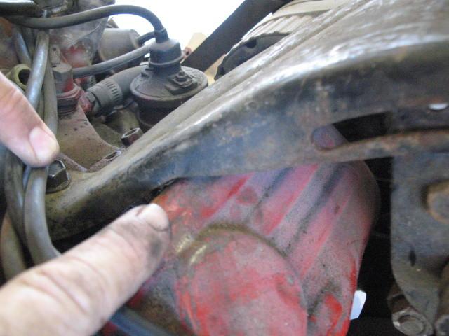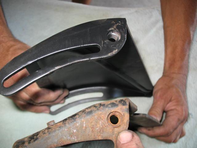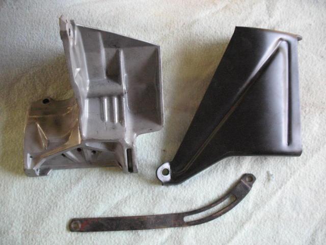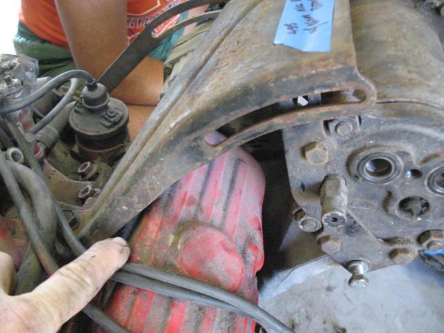 welded steel lower bracket. Notice the notch for the alternator rear case