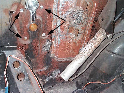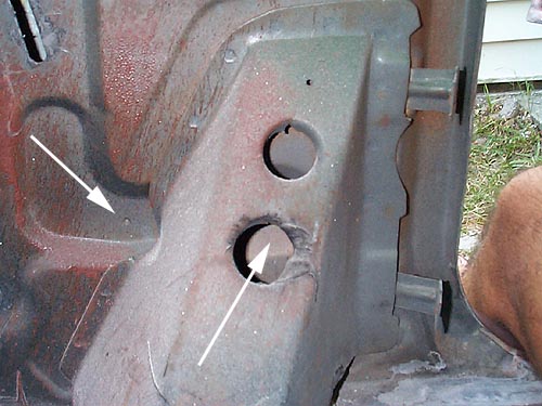 for the power window regulator. These will have to be drilled. Once again,