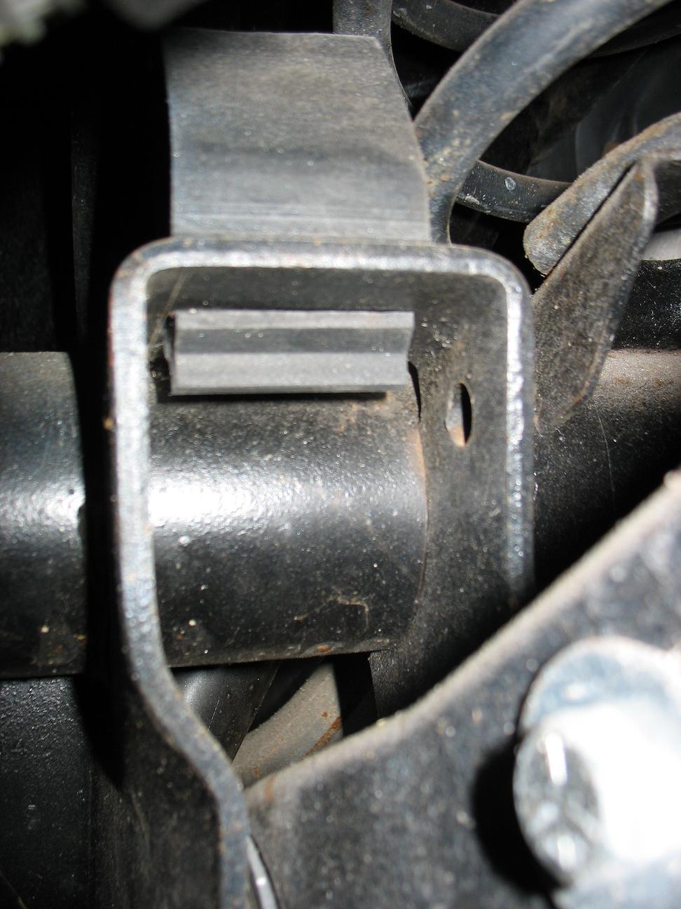 the triangular bump stop/snubber installed. Notice the hole