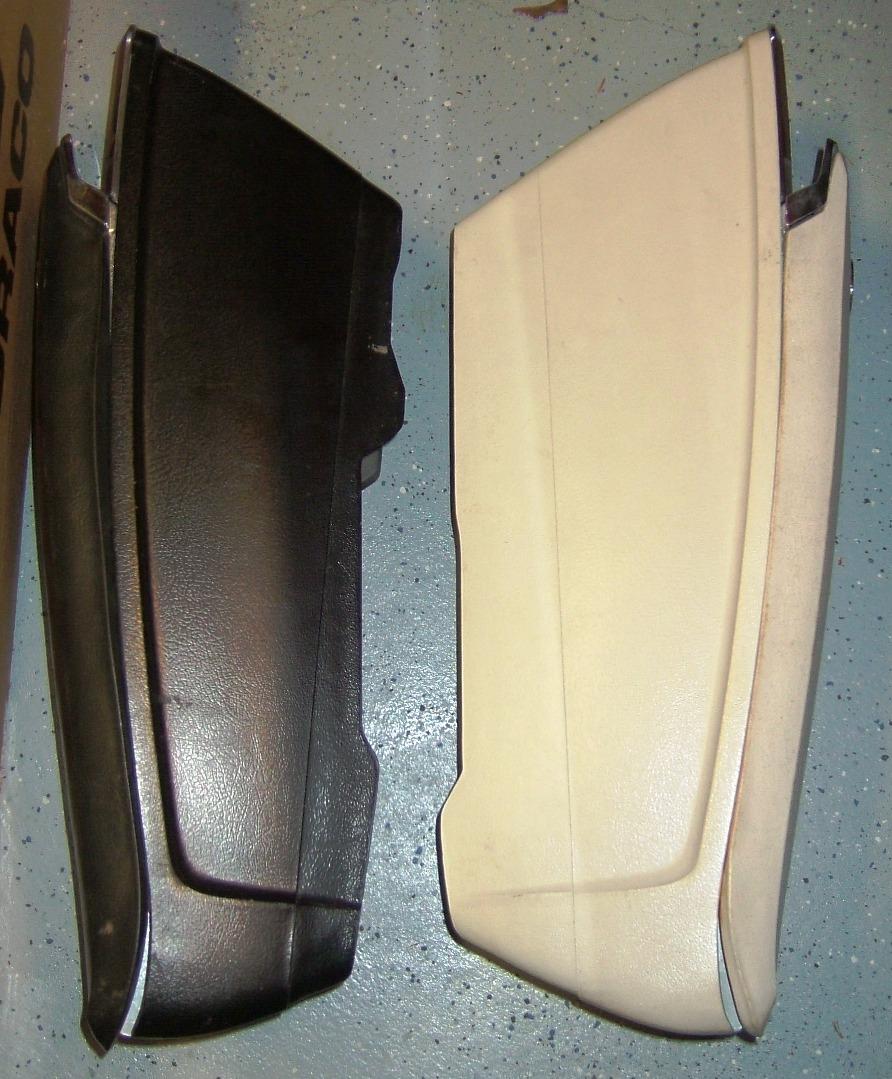 Upon collecting some Buick shorty consoles from specific Buicks I have learned that there was a difference in the base and height of a Skylark shorty console vs. a Riviera shorty console. The Skylark shorty console (the black one) does not have a straight baseline like the Riviera (the ivory one). The Rivera console is also an inch taller. Both consoles have the same mounting holes and can be used interchangeably. The differences were probably due to the floor hump and seat height differences.