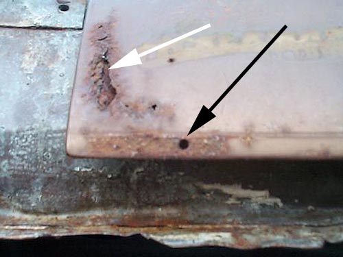 White arrow indicates non-factory rust option. This trunk
