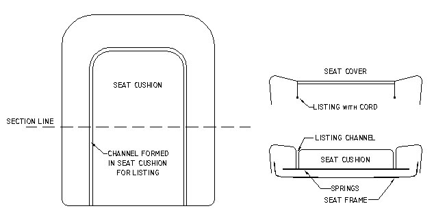 clamped to the frame. (See attached drawing.) The listing pulls the seat