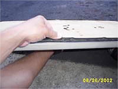The next step is to remove the metal strip along the top of the old panel. You need this for the new one. Here is a pic of the underside.