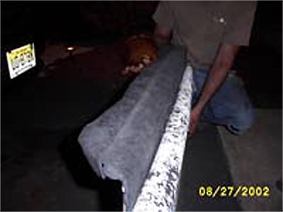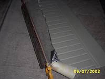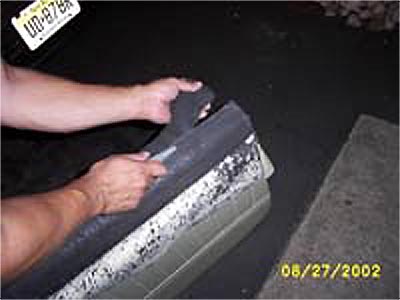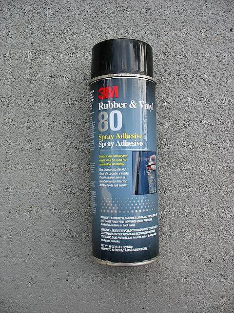 Now were ready to glue the foam padding to the metal strip. I used a spray adhesive from 3M, and it worked very well. Spray the metal strip, and allow glue to dry for a few minutes or until tacky to the touch. Pull the foam padding over the metal strip, and stretch it so there are no lumps in it.