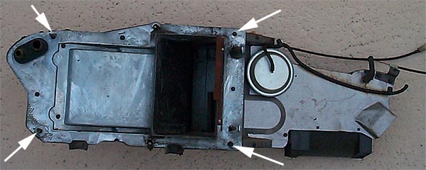 one strap in place. Remove the screws. Notice the dirt inside the air chamber,