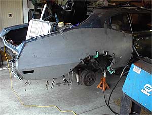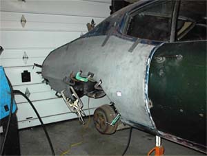 Right side ¼ panel clamped and tack welded in place waiting for panel adhesive to dry.