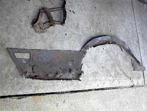 Initial cut of old metal on left side. Repair work Section cut off of left side showing rust damage and has started on the lip of outer wheelhouse previous repair work.