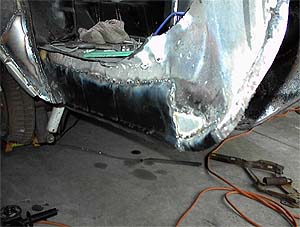 Trunk ext. tacked in place, left side Left side trunk extension welded on