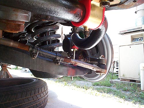 If the brackets are too much hassle to remove, JC Whitney carries new brackets with polyurethane bushings for $10/pr, part #74FG8536W. If you managed to get the brackets, you can purchase new bushings in either rubber or polyurethane at most local auto parts stores for $5-10. It is also a good idea to get polyurethane end link kits since polyurethane deflects less under load. You can get new poly bushings with brackets from Autozone, endlink kits are polyurethane, Perfect Circle, # SL72HD or use Energy Suspension mounts 9.5165R and endlink kits (w/2 5/8" spacer) 9.8117R