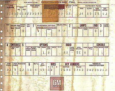 Shown below is a copy of tank sticker I pulled off a 1970 Skylark. This factory documentation is located between the top of the gas tank and the anti-squeak mat.