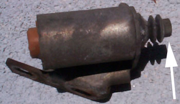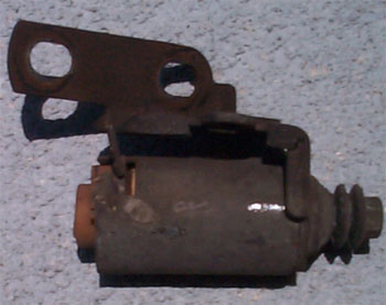For cars with a hot cam in pre-72 models with air, install a 72 and later idle speed solenoid on an ac equipped Buick. The solenoid increases the rpm when the compressor runs. Sometimes the additional load of the compressor will cause a rough idle. The solenoid can be spliced into the green wire running to the compressor with wire tap-in part #64-3052 at Radio Shack for $1.70/10. After splicing it in, set the non-air idle by using the screw on the carb and the air idle speed by unscrewing the plunger in the solenoid(see picture below with arrow)